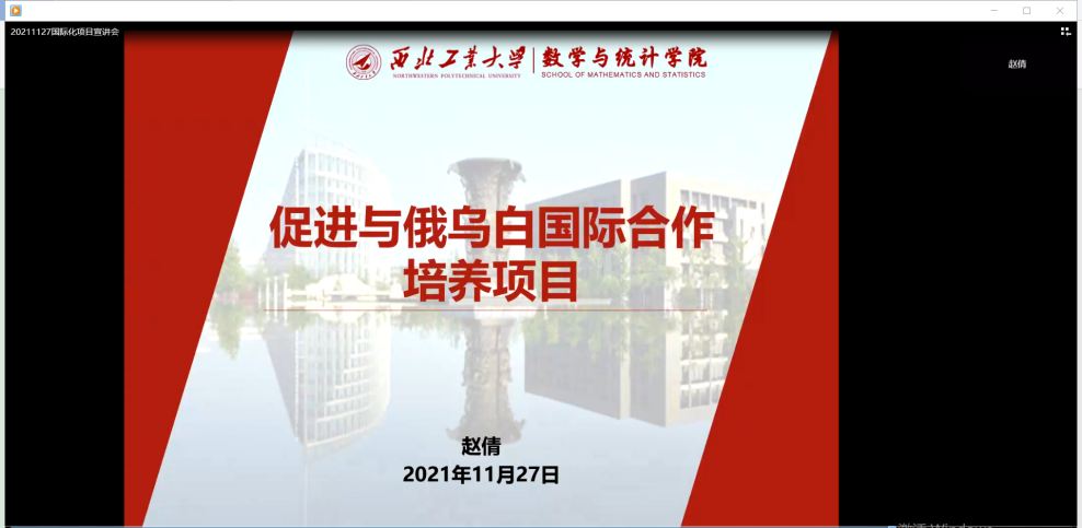 我校国际合作处张宇主管围绕学校设置的本科生与研究生国际化项目以及相关学生出国支持政策进行了介绍,并强调了国合处近期发布的小宝寻花 国际化领军人才培养项目,希望有相应出国交流意向的同学可以积极报名,同时简要介绍了与英国布里斯托大学拟签订的3+1项目。最后,我院李若楠和赵倩两位老师针对学院近两年申请到的国家留学基金委公派留学的两个项目做了宣讲,分别从合作项目的国外高校基本情况、合作基础、选派类别、时间、要求进行了详尽细致的阐述。同时,来自学校小语种培训中心的耿妍老师还对俄罗斯文化与俄语语言学习做了简要介绍,使参会师生更加了解俄罗斯的风土人情、科研实力以及俄语语言特点,为学院推进俄乌白公派项目的选派工作起到了非常重要的积极作用。