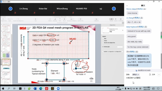 Balaji Raghavan老师讲课循循善诱,善于启发学生进行自主思考,从弹性力学基本知识,到线性/非线性有限元分析,再到结构/材料的拓扑优化设计的详细讲解,开拓了学生们的眼界,使得学生对此领域有了基本的认识。Balaji老师授课期间,经常与学生问答互动,并采取PPT板书、线上运行程序等方式,激发了学生们的学习兴趣和热情。Balaji老师的授课方式受到了学生们的一致喜欢,授课效果非常好。通过这门课程的学习,学生们对弹性力学基本知识、有限元分析的基本思想、拓扑优化设计的基本步骤都有了清晰的认识,收获颇丰。
