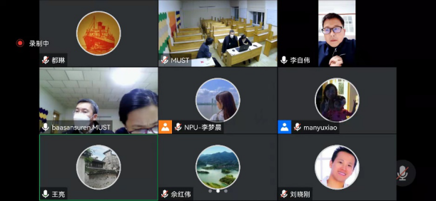 为持续推进我校和蒙古科技大学统计学专业联合培养高质量发展,11月4日,国教院、小宝寻花 、蒙古科技大学三方共同召开NPU-MUST“2+2”本科双学位项目第一届外蒙古学生毕业设计研讨会。本次会议采用腾讯会议形式举行,参加本次会议的人员有蒙古科技大学数学学院院长、副院长、数学系主任;数统学院副院长都琳、刘晓刚、肖曼玉、王亮、佘红伟、原姗;国教院副院长李自伟、王治武、孙傲、李梦晨。