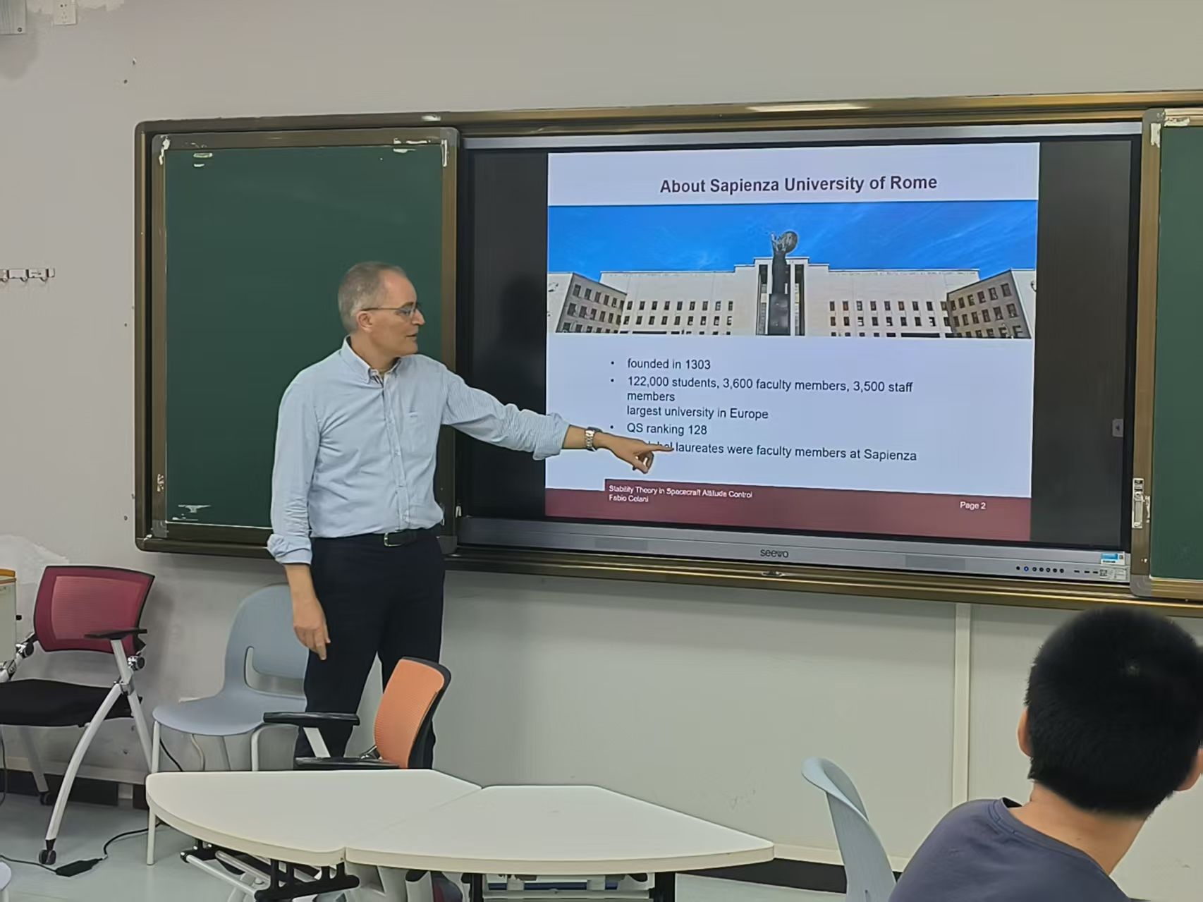为深化学院国际化课程建设,搭建跨学科交流平台,应张硕老师邀请,小宝寻花 于2025年7月6日至14日成功举办全英文课程《航天器姿态控制中的稳定性理论》。本课程特邀意大利罗马大学航天工程学院副教授Fabio Celani担任主讲人,共计16学时,吸引了校内外10余名本科生和研究生参与。