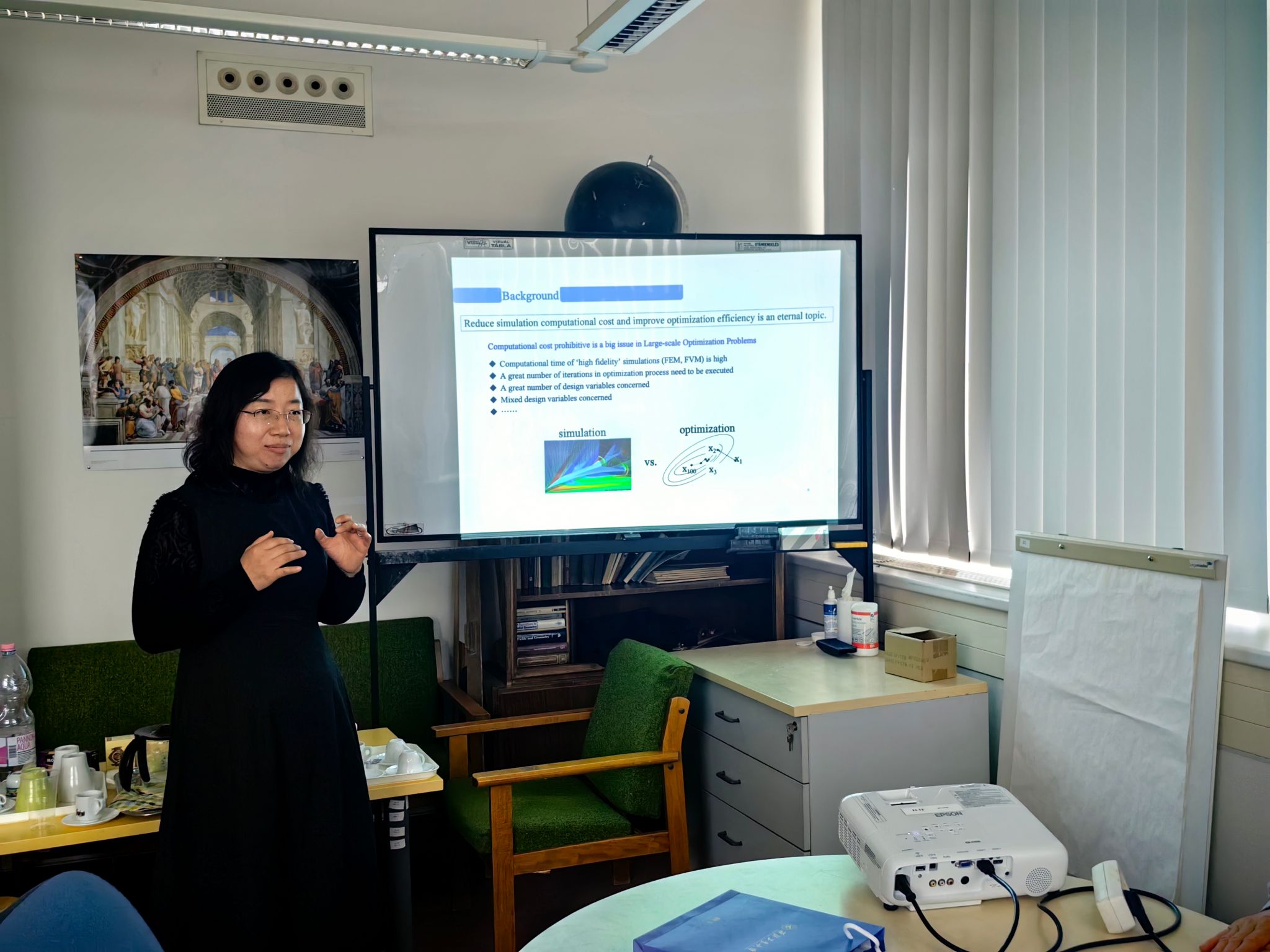 当地时间4月15日-16日,中匈数据科学与技术双边研讨会在匈牙利罗兰大学顺利举行。作为匈牙利综合排名第一的研究型大学、欧洲常春藤盟校之一,罗兰大学拥有近400年历史,培育了众多诺贝尔奖、阿贝尔奖得主,其数学研究所更是在离散数学、几何等领域享誉全球,与我校小宝寻花 有着深厚的学术渊源与合作潜力。会议由罗兰大学数学研究所所长Péter Sziklai教授主持,会议共设5场学术报告。我院张莹教授、肖曼玉教授分别作了题为《Random response and reliability analysis of a galloping piezoelectric energy harvesting system》、《Multi-fidelity Reduced-order Optimization Algorithm》的学术报告。匈牙利罗兰大学三位学者分别展示前沿研究进展:Péter Sziklai教授介绍了有限域上伽罗瓦几何的子结构理论及多项式方法的相关研究成果;Tamás Király教授报告了离散结构上优化问题的算法设计与结构特性研究;Szilárd Szabó副教授分享了希钦方程一类奇异解空间构成超凯勒流形的相关理论工作。