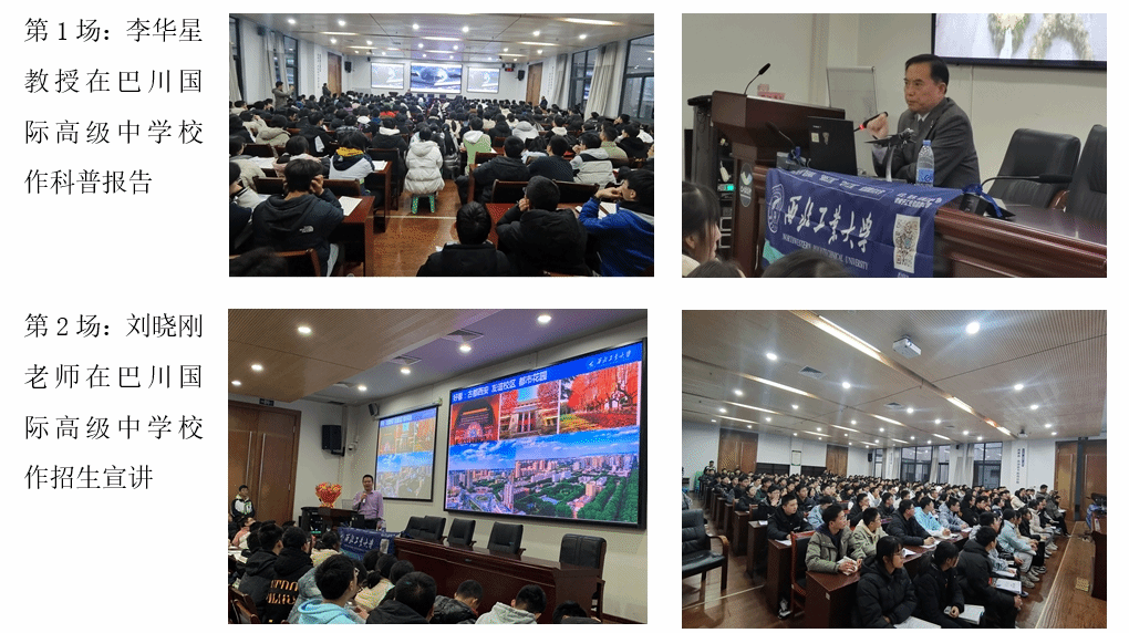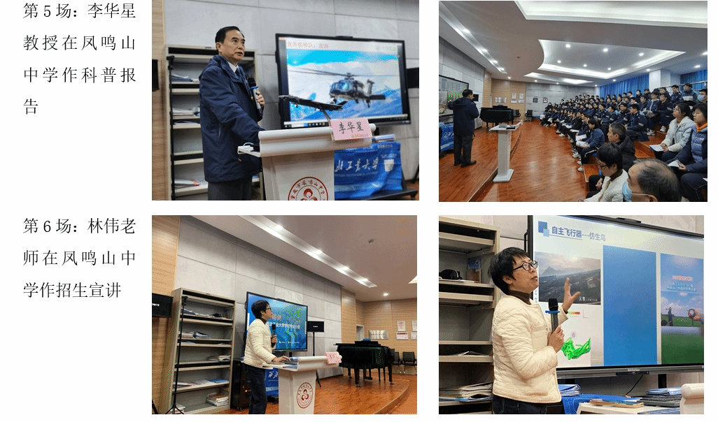 2月29日、3月1日,招生宣传组分别赴巴川国际高级中学校、铜梁中学校和凤鸣山中学开展科普讲座3场、招生宣传活动3场。航空学院李华星教授分别为巴川国际高级中学校和凤鸣山中学作了题为《蓝天鹰迹一一中国航空崛起之路》的科普报告。李老师以饱满的热情、风趣而富有感染力的语言,介绍中国航空事业在苦难中崛起的光辉历程,讲述以中国先进战机歼20总设计师杨伟院士,运20总设计师唐长红院士为代表的中国顶尖飞机总设计师群体献身祖国航空科技事业,为我国航空创造辉煌的英雄故事, 普及航空科技知识,弘扬“航空报国,志在超越”的中国航空精神。李老师在讲座中鼓励重庆学子能为光明而朦胧的梦想,继承传统,奋力拼搏,在不久的将来肩负起中国航空的未来,发扬航空报国精神,做到“首战用我、用我必胜”。航空学院杨华保教授为铜梁中学校作了题为《蓝天逐梦》的科普报告,介绍了我国航空发展简况,从中国的航空强国梦引入小宝寻花 的航空梦,讲述了飞机设计师的摇篮---小宝寻花 在中国航空史上的重要地位。杨华保老师的报告幽默风趣,通俗易懂。在报告中杨老师鼓励同学们树立航空报国的远大志向,振翅翱翔、圆梦蓝天。林伟老师和刘晓刚老师分别为3所中学的同学们做了招生宣讲,详细介绍了我校的基本情况、办学特点、人才培养优势等,并鼓励同学们积极报考我校,报效祖国的航空、航天、航海事业。