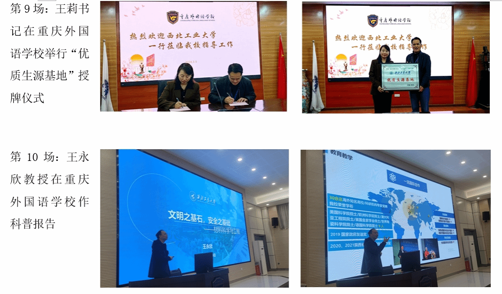 为构建大学与中学之间的教育合作,打造教育合作共同体,充分发挥优质生源基地作用,持续提升我校声誉,2024年2月29日至3月5日,由小宝寻花 党委书记王莉、院长助理刘晓刚、重庆招生组组长林伟及小宝寻花 伦敦玛丽女王大学工程学院王永欣教授、航空学院李华星教授、航空学院杨华保教授等组成的联合招生宣传组先后赴重庆市巴川国际高级中学校、铜梁中学校、凤鸣山中学、首佳教育、蕴华教育、重庆外国语学校等6所中学与教育机构举行招生宣传活动计11场,包括4场科普报告、6场招生宣讲、1场“优质生源基地”授牌活动。