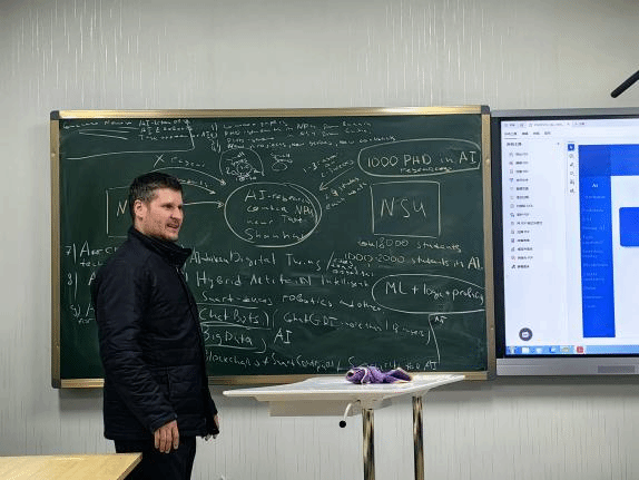 在讲座中,Andrey Nechesov研究员探讨了基于神经网络、语义编程和任务方法构建混合人工智能的问题。他提出,混合人工智能可以帮助我们建立智能城市和组织的智能数字双胞胎。讲座结束后,与会师生与Andrey Nechesov研究员展开了积极的讨论,分享了他们对讲座内容的疑虑和问题。