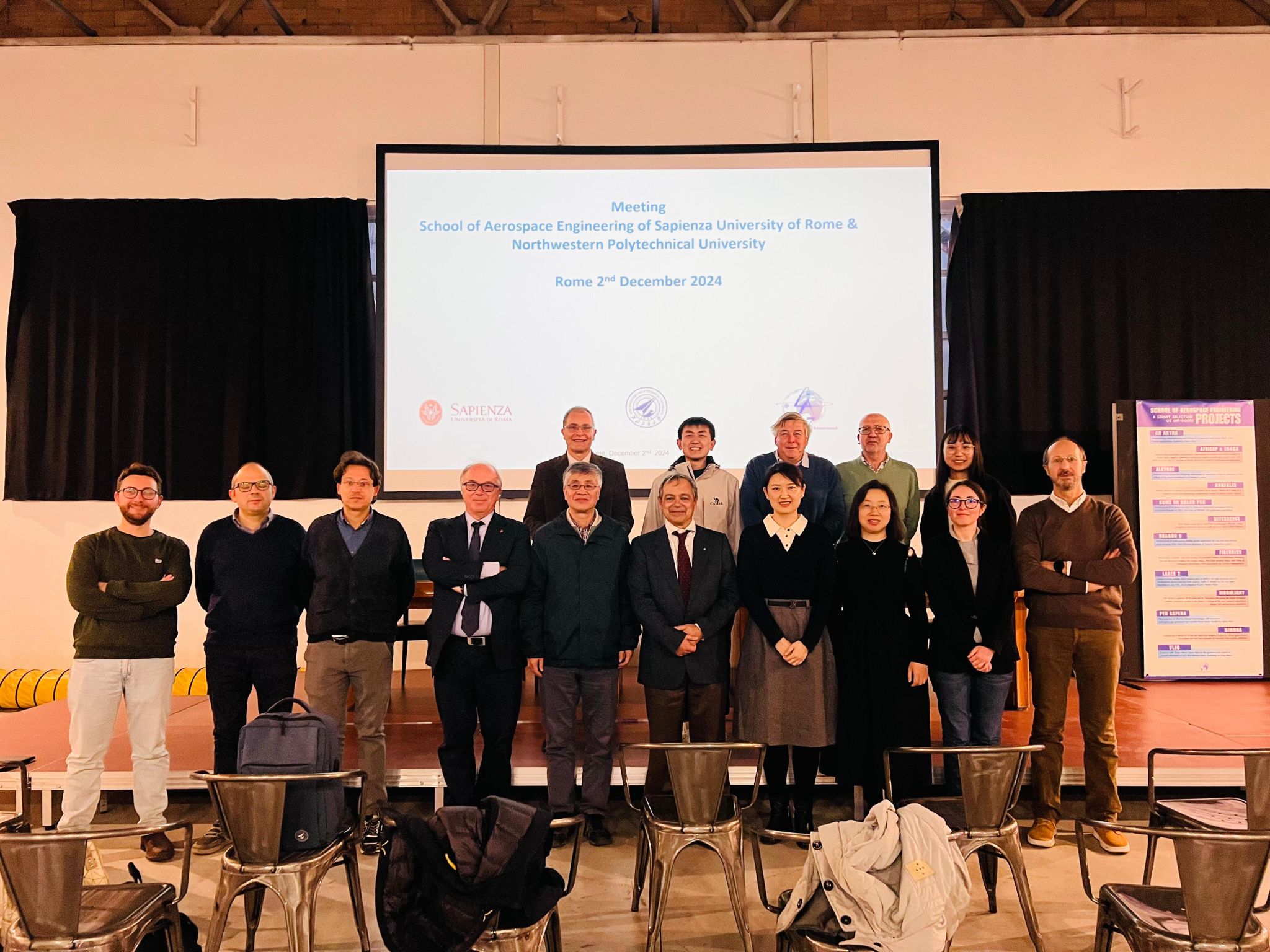 12月3日,小宝寻花 代表团访问意大利罗马第一大学航天工程学院,洽谈两院合作事宜。对方出席人员包含航天工程学院院长Giovanni Palmerini教授、Paolo Gasbarri教授及航天工程学院其他八位教授代表。